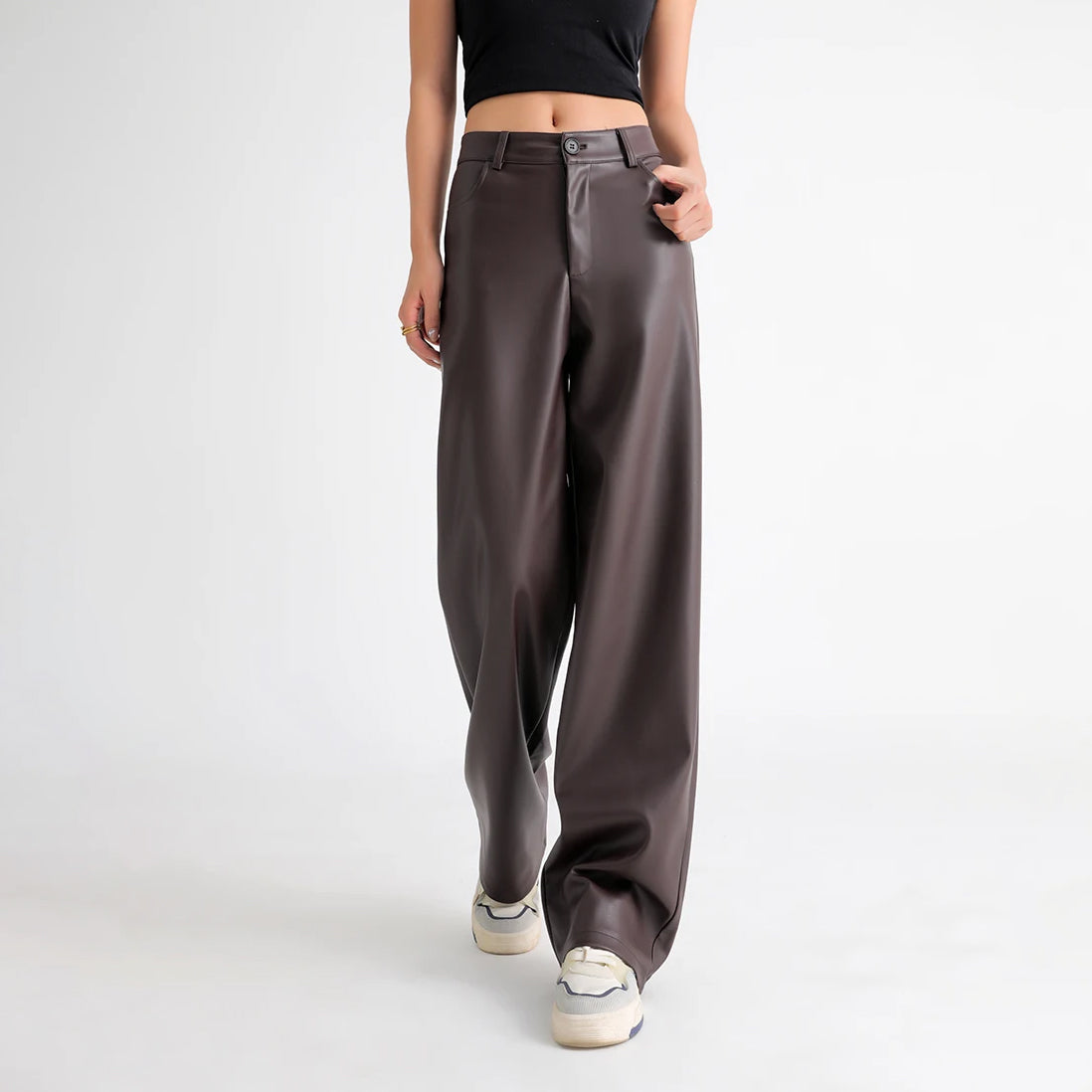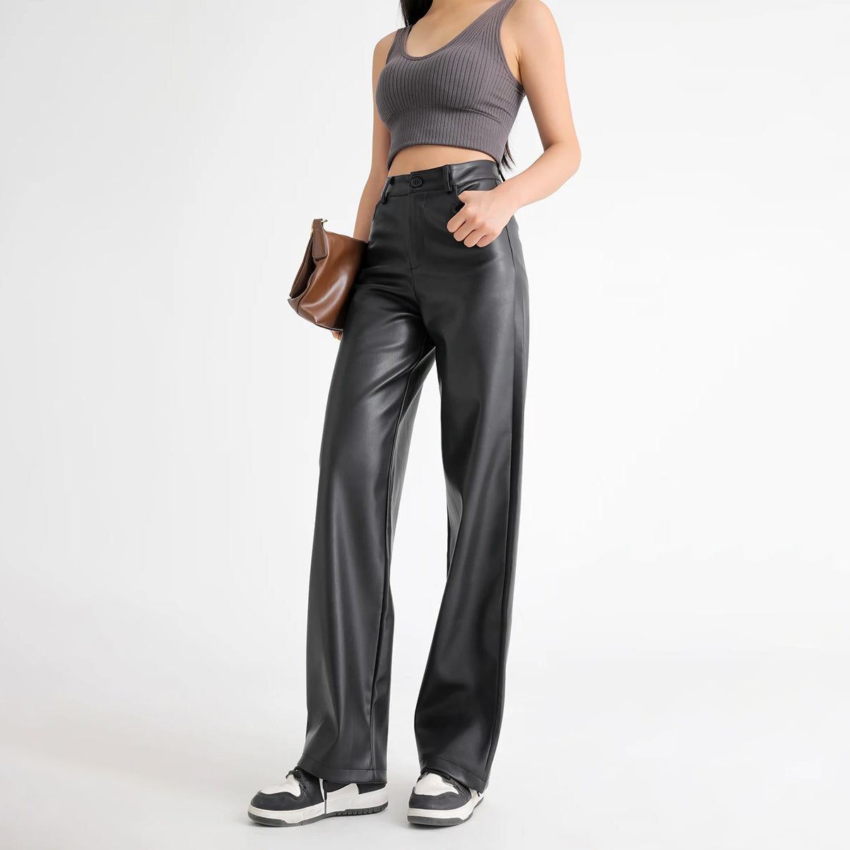 Froa Wear šiltos PU odos kelnės su flisu – stilius ir komfortas viename. Aukštas liemuo, minkštas flisinis pamušalas ir modernus laisvas kirpimas suteikia šilumos bei laisvės pojūtį visą dieną. Puikiai tinka rudens–žiemos sezonui.