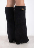 Elegantiški ilgaauliai batai su metalinėmis sagtimis – puikus pasirinkimas moterims, vertinančioms stilių, komfortą ir kokybę. Šie batai išsiskiria brandžiu dizainu, dailiu prigludimu ir kokybišku mikropluošto paviršiumi, kuris atrodo prabangiai, bet išlieka itin patogus kasdienai.
